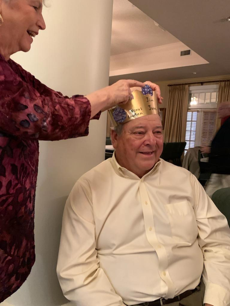 We made Jim king of our table. He was surrounded by 5 neighbors ladies. Who are widowed or husbands that could not come. June was such a good sport.