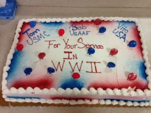 Cake honoring our World War II Vets Cake and Cookies and a fun time by all.